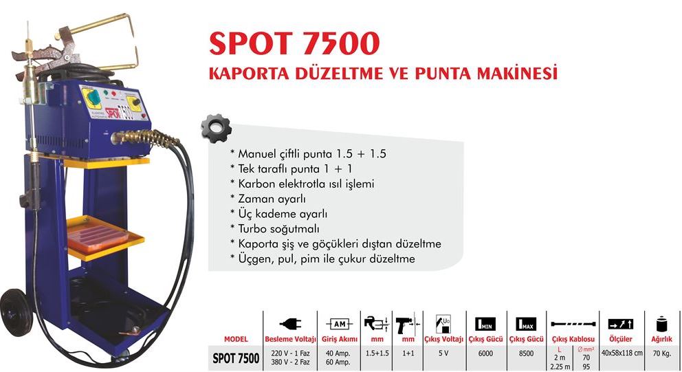 Spot 7500 tüm sac birleÅŸtirme iÅŸlemlerinde de kullanılabilir.